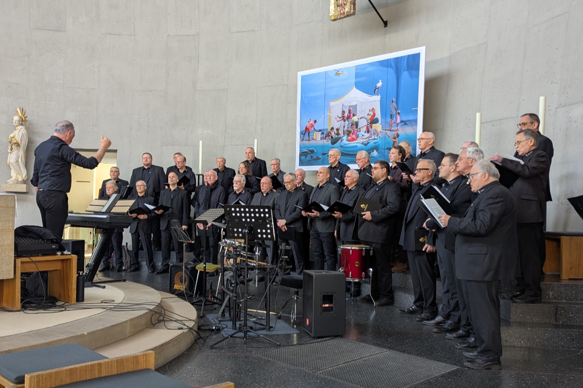 Die feierliche Atmosphäre der Kirche wurde im nächsten Teil voll ausgeschöpft, als der Männerchor den Raum mit Werken wie „Kyrie“, „Pater Noster“ und dem stimmgewaltigen „Sound of Silence“ flutete. Ein besonderer Höhepunkt war die „Walpurgisnacht“, ein Stück aus Meinhard Winds eigener Feder. Auch der Moderne Chor aus Leutershausen und Hohensachsen bereicherte den Abend mit modernen Beiträgen von Pink bis Lady Gaga und unterstrich die freundschaftliche Vernetzung der Ensembles.