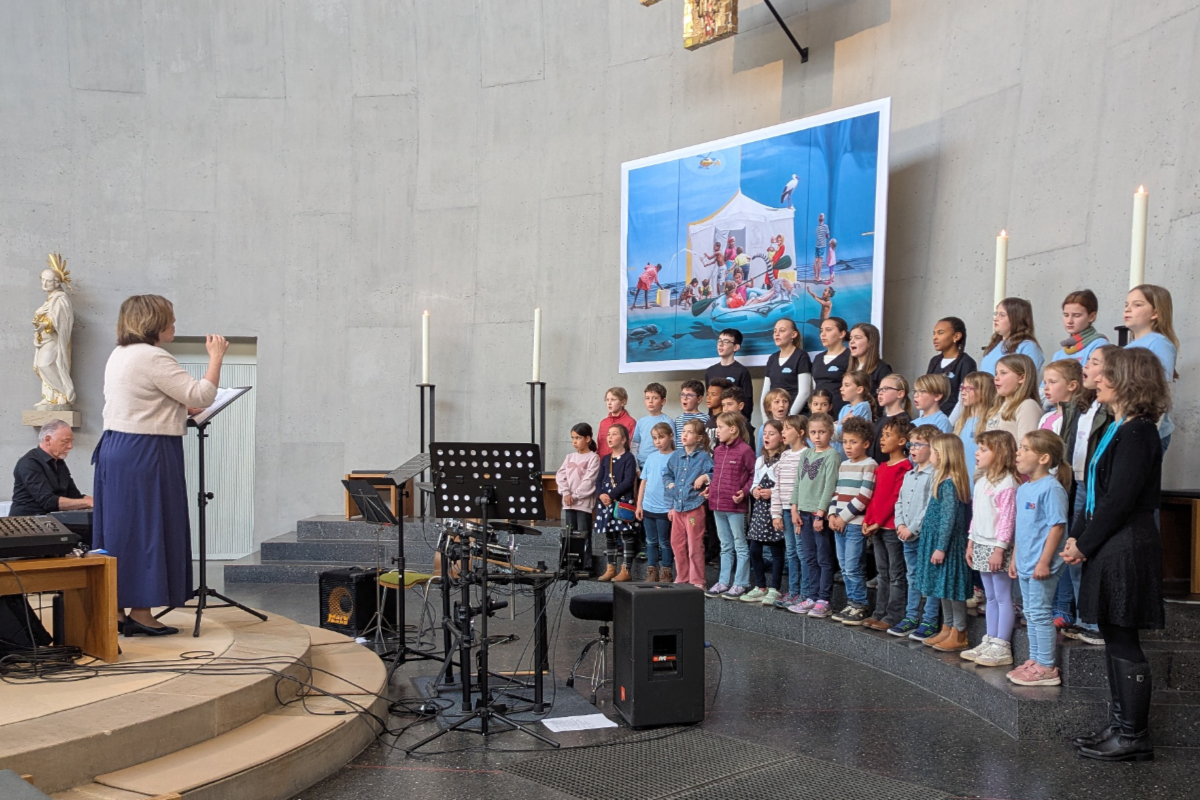 Anschließend eroberten die jüngsten Stimmen die Herzen der Zuschauer: Der gemeinsame Kinderchor aus „nextgeneration“, den „DreamSingers“ und dem Kinderchor der Kurpfalz-Grundschule Schriesheim begeisterte unter der Leitung von Sabine Grimm mit Liedern aus „Die Schule der magischen Tiere“. Meinhard Wind begleitete hier selbst am Klavier, unterstützt von David Heiß am Cajon.